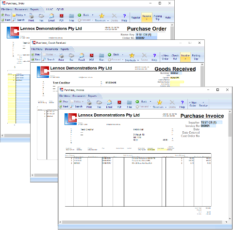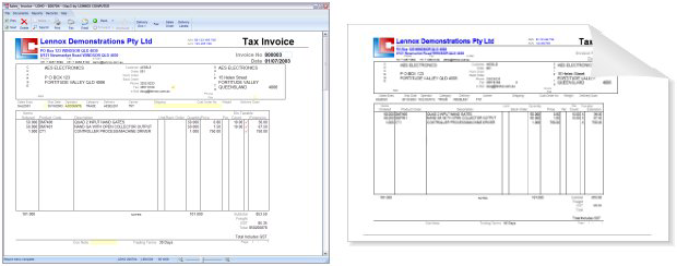 All documents within LILAC allow the user to essentially operate in a form filling in WYSIWYG (What You See Is What You Get) environment. What you see on the monitor, is what you get when a document, i.e Tax Invoice, is printed, emailed, or stored. All transactions, such as purchases, sales, stock transfers, etc, are processed with a WYSIWYG document orientation, which means re-keying duplicate entry of data for multiple purposes is completely eliminated.