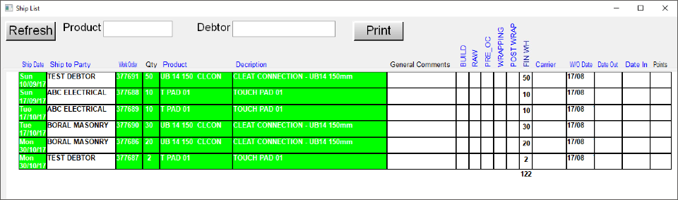 Manufacturing Manager can collect input from any manufacturing process providing an audit trial of manufacturing, corresponding to a series of Work Order requirements set by the LILAC Work Order document. Input from the factory floor may be taken from barcode scan, touch pad, or factory floor PC.