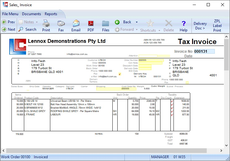 Integrated with core Sales Order, Work Order, Invoicing, and Reporting functions.
