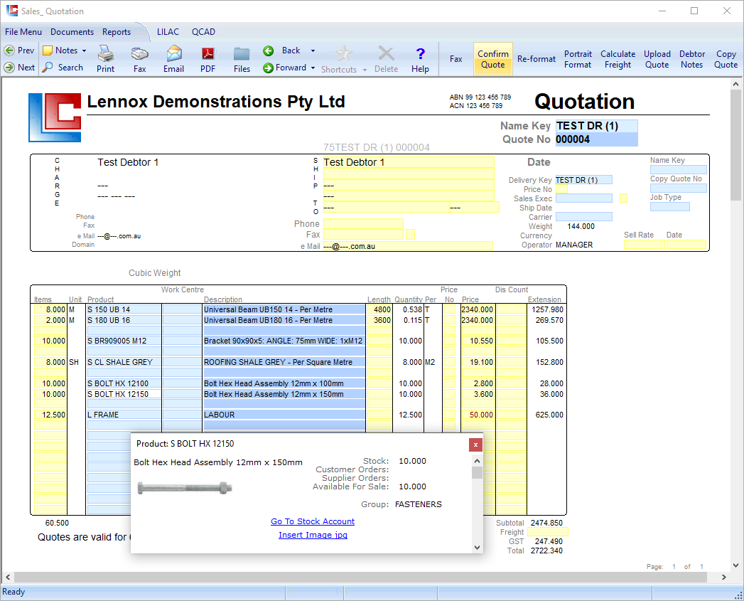 Combining manufacturing and accounting functions - Estimates, Quotes, Work Orders, and Sales Invoice generation - provides fabricators with a comprehensive, whole of enterpise, production and accounting management tool - monitoring business activity from procurement to stock accountability, through order placement, manufacturing, sales, and freight.