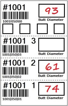 Weather-proof plastic barcode labels identify each log and its off-cuts.